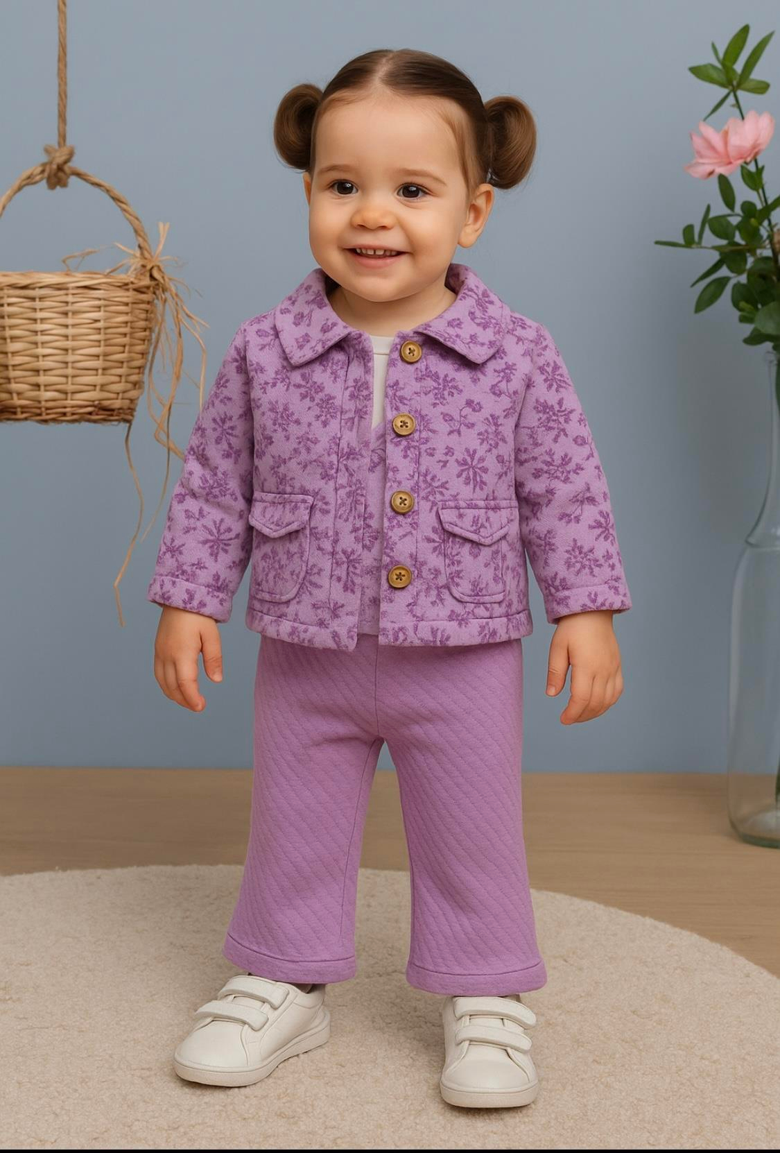 Çiçekli Üç İp Ceket Tayt Takım-MOR (882514)