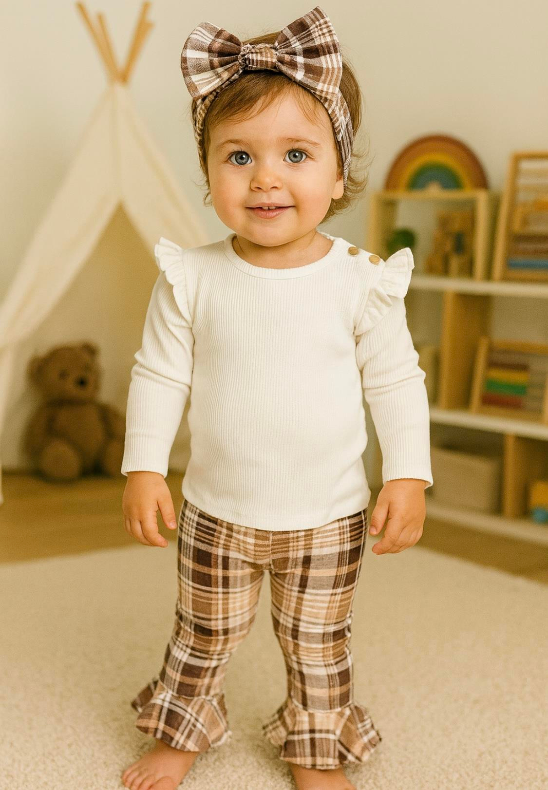 Ekoseli Bandanalı İspanyol Paça Takım-BEYAZ