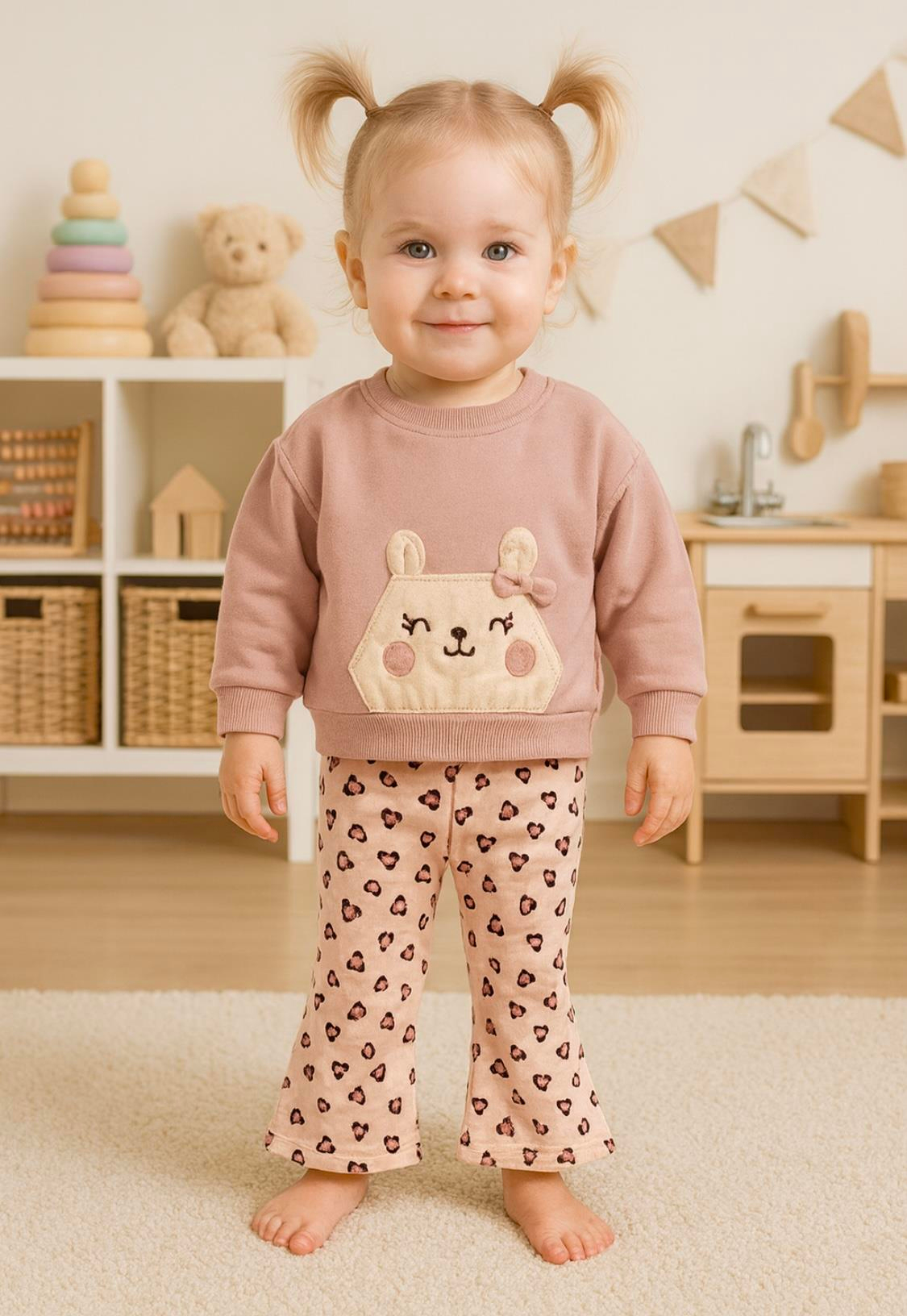 Ayıcık Kulaklı İkili Takım-PEMBE