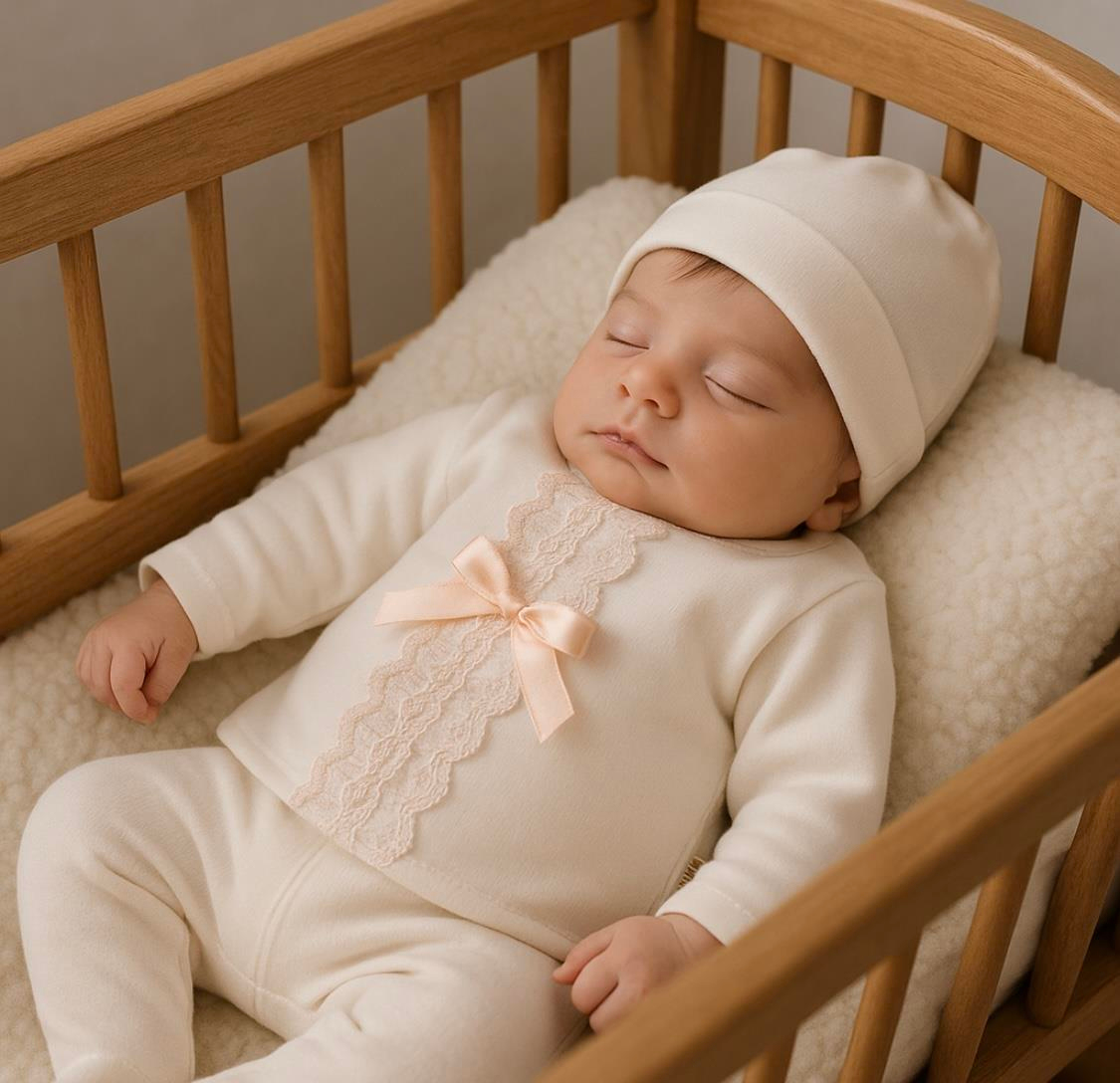 Kadife Güpürlü Üçlü Set-BEYAZ