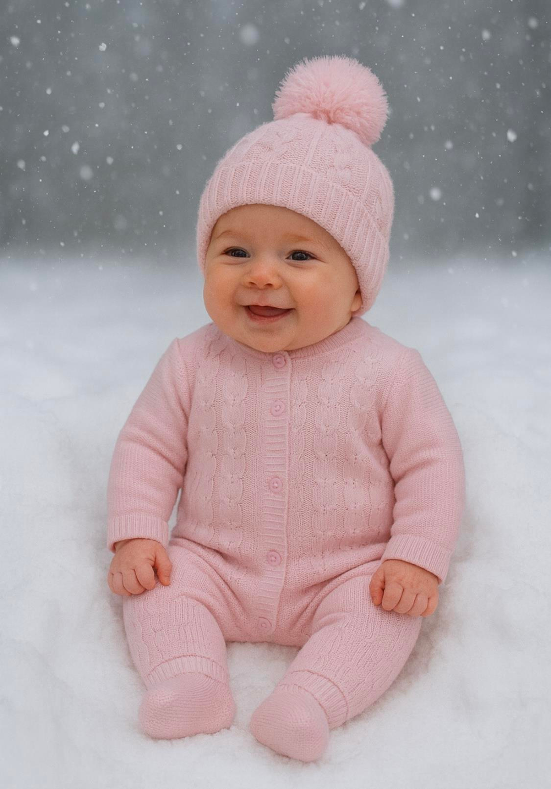 Ponpon Şapkalı Örgü Tulum-PEMBE