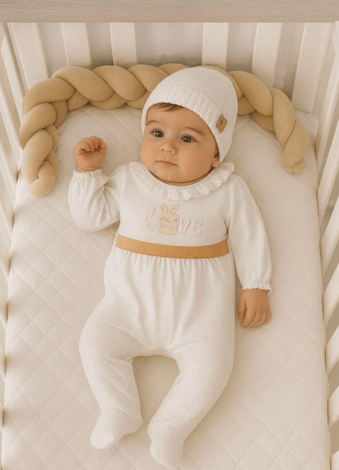 Tavşan Nakışlı Şapkalı Tulum-BEYAZ