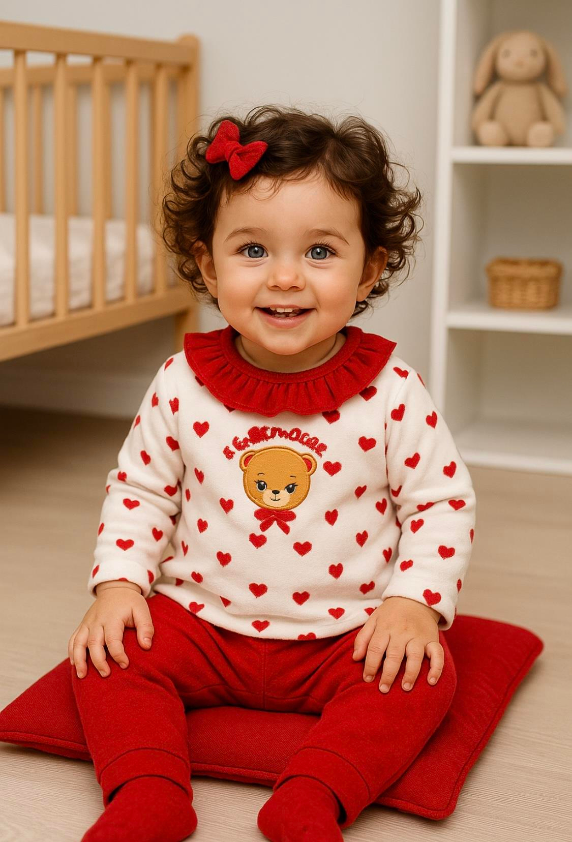 Kadife Ayıcıklı İkili Takım-KIRMIZI