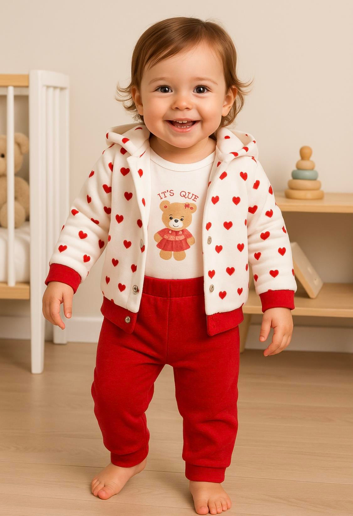 Kadife Kalpli Badili Üçlü Takım-KIRMIZI (882514)