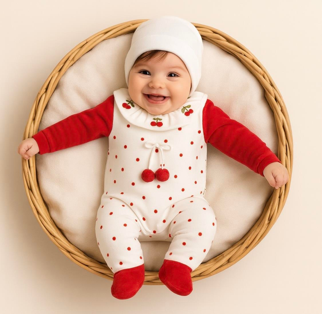 Kadife Kirazlı Puantiyeli Tulum-KIRMIZI (442314)