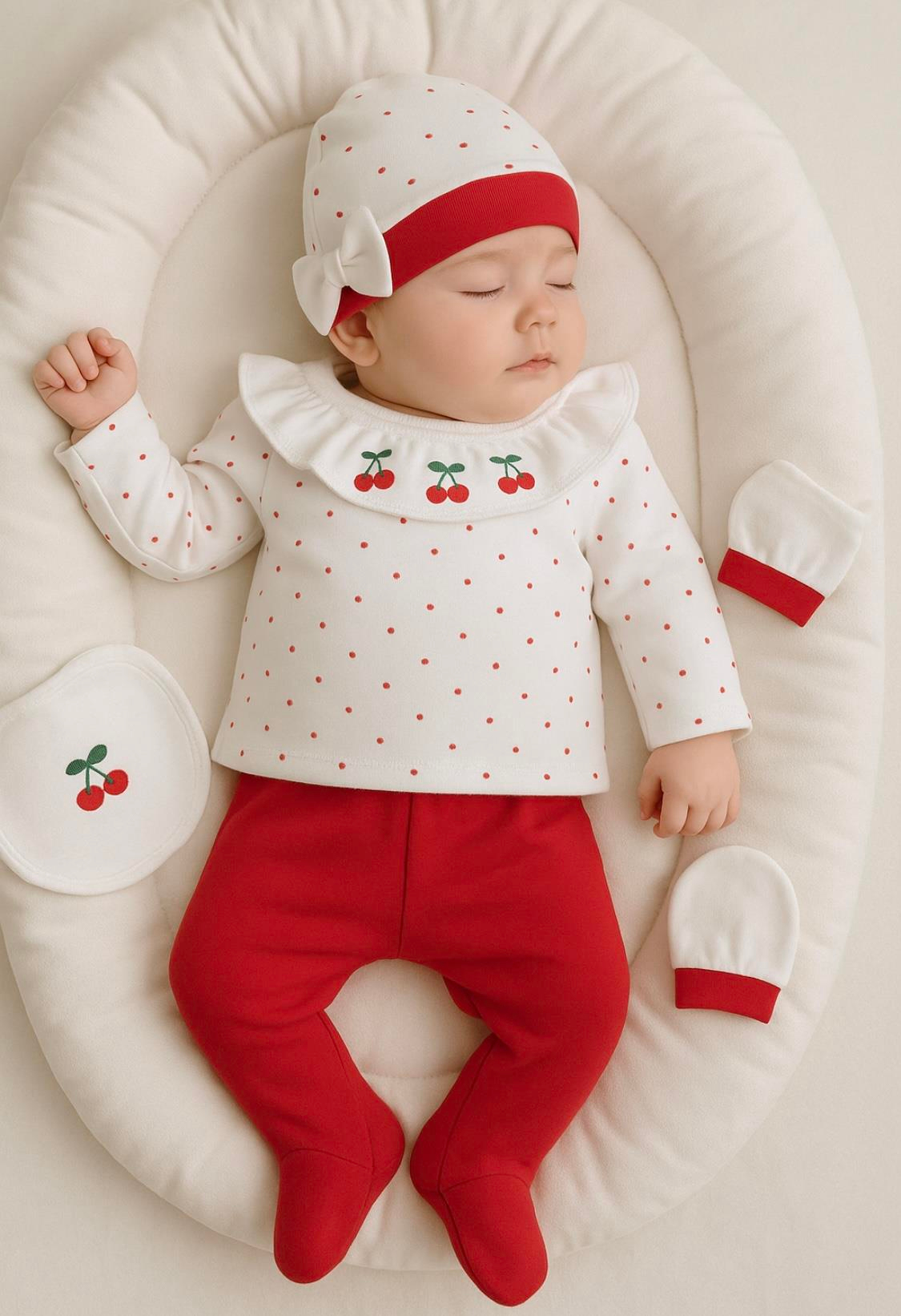 Kirazlı Kadife 5 li Hastane Çıkış Seti-KIRMIZI (243412)