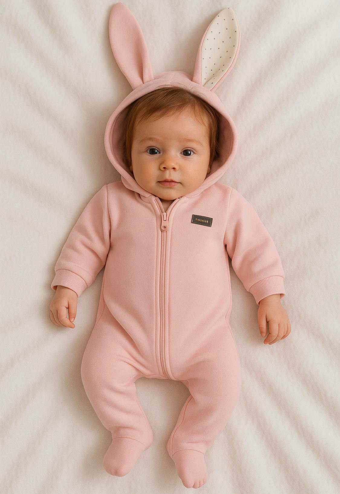 Tavşan Kulak 3 İp Fermuarlı Tulum-PEMBE